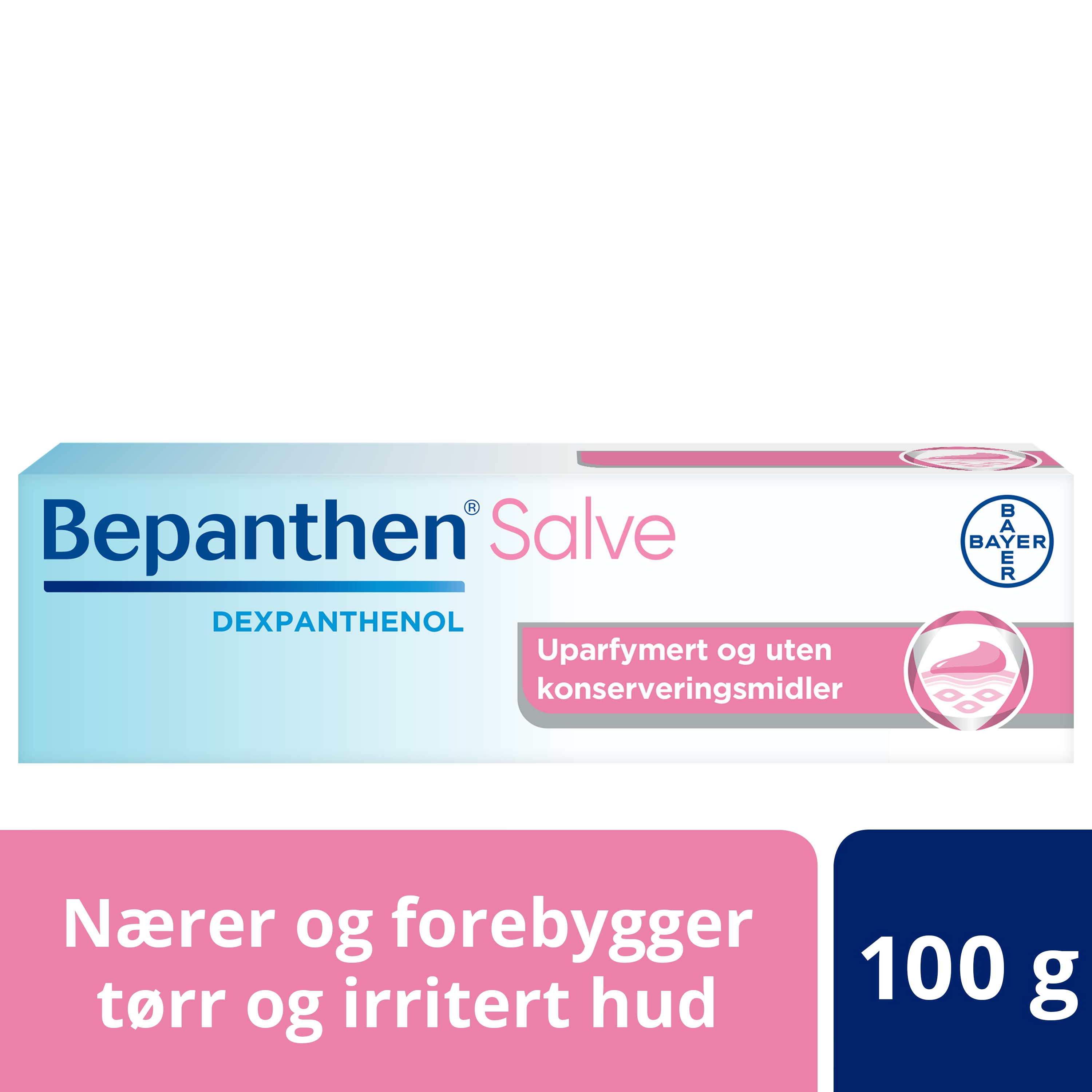 Bepanthen® Salve nærer tørr, sprukken og sensitiv hud, beskytter den og bygger opp huden. Bepanthen® Salve er en trygg og effektiv salve for mange typer milde hudirritasjoner. Enten du er en voksen, et barn eller en baby.